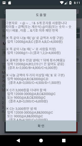 ▣ 똑 같이 나눌 때( '@' 로 금액과 사람 구분)