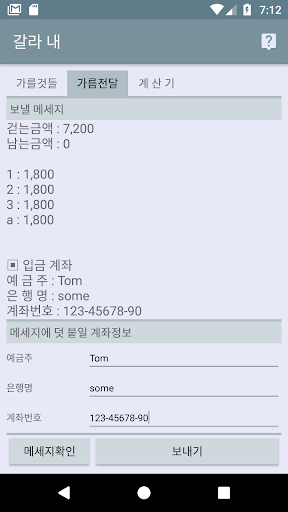 ▣ 계산 결과는 SNS로 전송 할 수 있습니다. (입금 계좌 정보를 추가 할 수도 있습니다.)