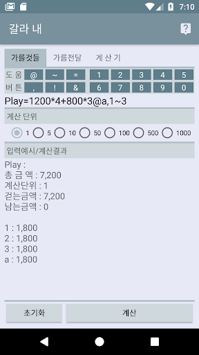 입력 12000@A,B,C (결과 A,B,C=4,000원)