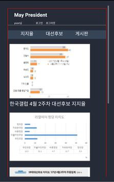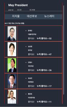 5월 9일 대선! 수십 개의 각종 여론조사 기관의 최신 지지율, 후보 정보 등이 한 곳에 모여있어 객관성있게 후보를 검증할 수 있습니다. 후보별 인기투표와 자유게시판을 통해 자유롭게 생각을 타낼 수도 있습니다.