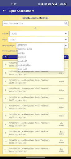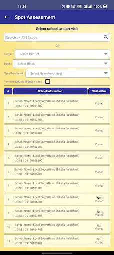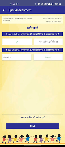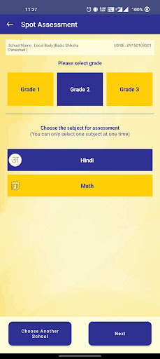 학생들의 스팟 평가는 Udise 코드, 수업을 선택하고 응용 프로그램을 사용할 수 있도록 수행 할 수 있습니다. ,, 멘토가 교사들에게 효과적인 대응을 할 수있는 테스트 완료시 스코어 카드가 표시됩니다.