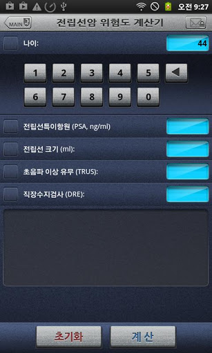 이 계산기는 의사들의 진료를 돕기 위해 제작된 것으로, 환자가 이용하는 경우는 임의적으로 결과를 해석하지 말고 참고용으로만 사용하십시오. 환자는 전립선암의 진단, 예후 예측, 치료에 대해 항상 비뇨기과 전문의와 상의하셔야 합니다. 서울대학교 전립선암 계산기의 제작자는 본 계산기의 사용과 관련된 어떠한 법적인 책임도 없음을 밝힙니다.