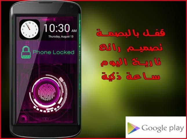 يتميز برنامج حماية التطبيقات هذا و حماية هاتفك أنه يحمي جهازك و يعطيك تصميم جد رائع لشاشة القفل به ساعة رقمية و ساعة ذكية اضافة الى تاريخ اليوم و مكان فحص البصمة. التطبيق الأول الذي يضمن لك تصميم جد رائع كخلفية قفل الشاشة.