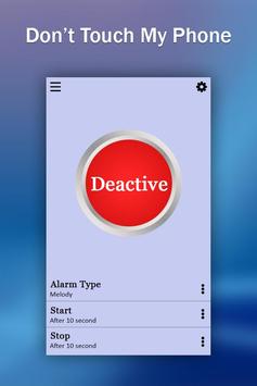 Don't Touch my Mobile phone alarm security app is a Phone Alarm application which can be used for Phone Alarm & burglar alarm to keep people from messing with your Cell phone alarm by alarming when someone want to pick up your Personal phone alarm & loud alarm.