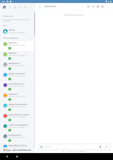 Tam Tam talk is a collaborative messaging app, it's allows organizations to talk to their fiduciaries efficiently and easily. Several channels are created by default for you, inwhich you can touch your folder responsible or your fiduciary feeds. All that is made in a moderne chat app with video audio call, voice and text message and a lot of other funny and useful things.