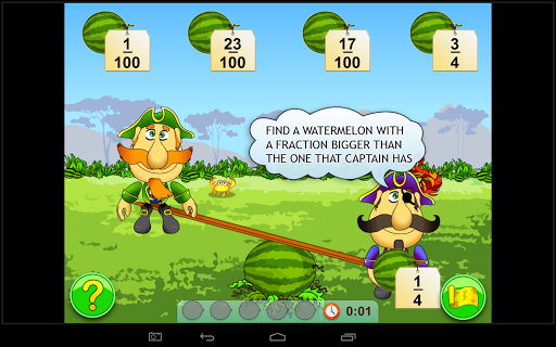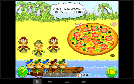 플레이어는 분수를 읽는 법을 배웁니다. 그렇게하기 위해서는 그 / 그녀는 피자의 조각을 해적을 제공하고 피자의 일부가 보트에서 먹을 다른 해적들이 무엇을 남겨 두는지 짐작하려고 노력합니다. 해적들이 곤경에 빠지면 실수가 있다면.