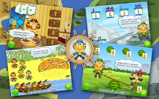 가상 네 번째 섬에서 해적 사랑스러운 케이크의 몇 가지와 함께 스스로를 치료하는 유혹. 이 게임에서, 플레이어는 해적 조각을 제공하고 그의 케이크 전체의 일부분을 어떻게 만드는지 추측합니다. 계산에 실수가 있다면, 해적은 케이크가 심근 앵무새로 먹을 때 해적이 슬프고 배고프다.