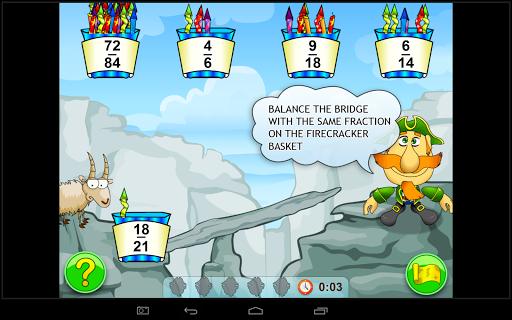 두 번째 섬에 해적은 밑바닥이없는 심연을 가로 질러 가야합니다. 그것을하기 위해서는 Firecracker Baskets를 사용하여 다리의 균형을 맞추어야합니다. 이 게임에서 플레이어는 해적이 동등한 분수로 바구니를 선택하는 데 해적을 돕습니다.