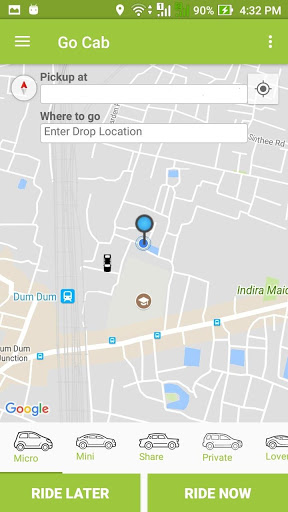 Set your pickup location (E.g. Home, Office, Airport, Railway station or your current location)