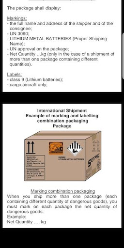 Lithium Batteries is an application that, through guided steps, will allow you to prepare your shipment in accordance with the requirements of ADR Regulations (by road), IMDG (by sea) and ICAO/IATA Regulations (by air) of: