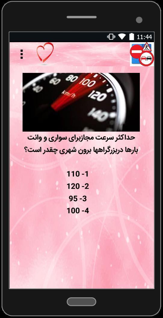 در این نرم افزار سعی کردیم جدیدترین نمونه سوالات آزمون آیین نامه رانندگی را تهیه و در اختیار