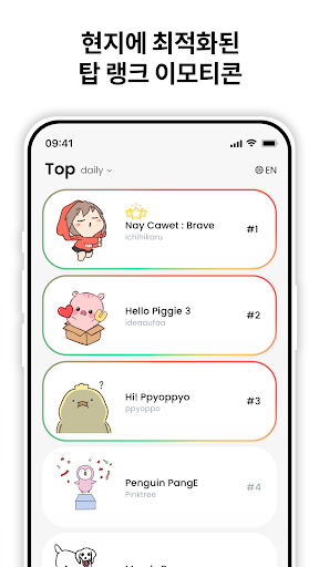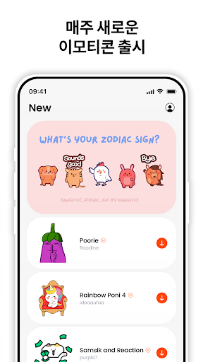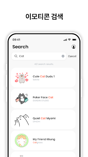 감정, 상황 또는 아티스트를 검색해서 내가 원하는 이모티콘을 찾을 수 있습니다.