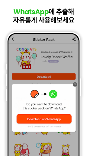 • 매월 5개의 이모티콘 팩을 WhatsApp으로 내보내기 (플랜이 추가 될 예정입니다)