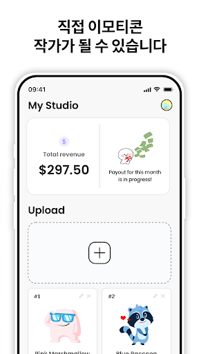 이모티콘 팩을 업로드하고 월별 판매 수익을 받아보세요. Stipop Studio 가입 - https://studio.stipop.io