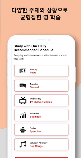 보고 싶은 재밌는 영상으로 영어 배우세요. 더이상 지루한 교과서나 일방향 강의는 그만! 내 영어 듣기 실력과 발음에 대해 즉각적으로 피드백과 점수를 받아 바로바로 영어 실력 향상할 수 있습니다.