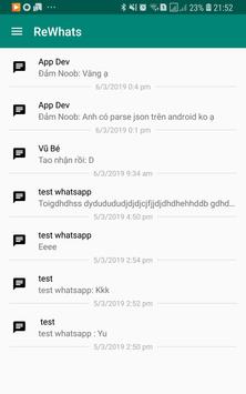 With rewhats you can easily backup your whatsapp messages. If you or someone deleted messages in whatsapp, you still find it on reWhats.