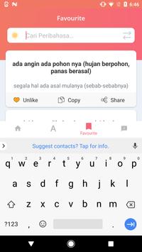 - Favorit, dengan fitur ini pengguna bisa menyimpan peribahasa yang disukai.