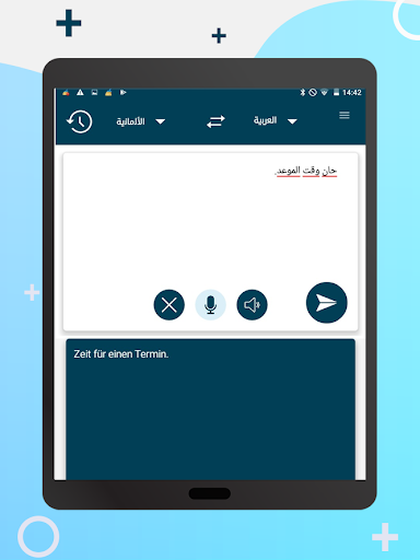 아랍 독일어 번역기의 응용 프로그램은 매일 멋진 텍스트를 번역 할 수 있으며 소외 국가에서 일과 연구에 도움이됩니다. 이 응용 프로그램은 즉각적인 인터프리터가 독일어 또는 아랍어를 제 2 언어로 연구하는 학생에게 매우 유용합니다.