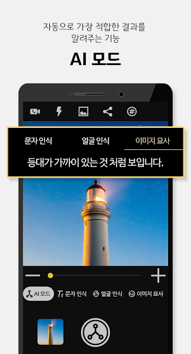AI모드 - 촬영한 사진에 가장 알맞은 결과를 인공지능이 자동으로 찾아 알려줍니다.