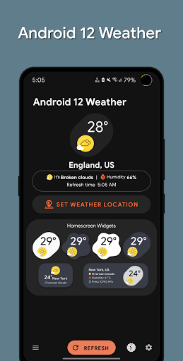 - 모든 Android 12 & amp;Android 13 디자인을 갖춘 날씨 위젯