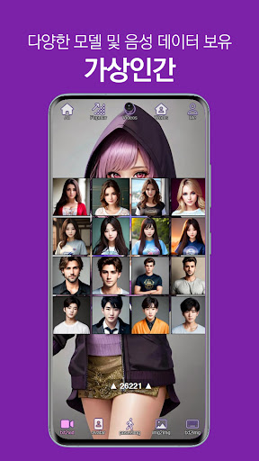 16개 동서양 남녀의 프리셋과 한/영 AI 보이스를 보유중입니다. 원하는 모델과 보이스 유형을 선택 후 텍스트를 입력하면 선택한 모델이 입력한 대사를 발화합니다. 생성된 영상은 저장하여 브랜드 마케팅 용도로 활용할 수 있으며, SNS에서 나를 대체할 가상인간으로 누구나 쉽게 크리에이터가 될 수 있습니다.