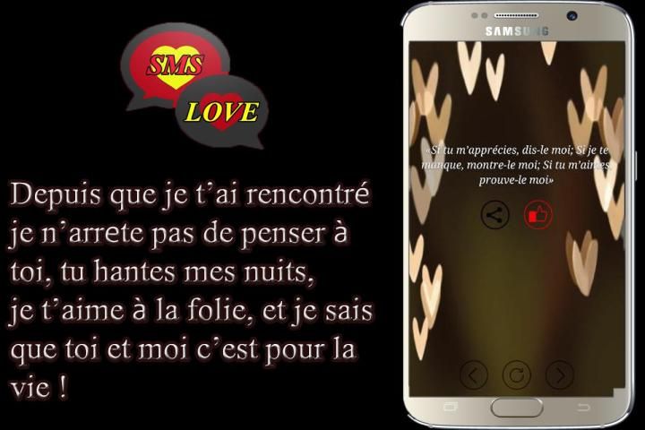 Express your feelings and send a little love in very soft French message to your love has become very easy with this application, you no longer have to write SMS for your sweetheart, you simply open the app, choose the message you want to send and hop done!