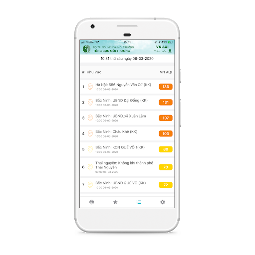 - Xếp hạng chất lượng không khí theo các trạm quan trắc.
