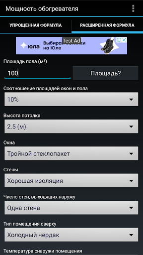히터의 전력 : Qt (kw/hour) = (100 w/m2 * s (m2) * k1 * k2 * k3 * k5 * K6 * K7)/1000