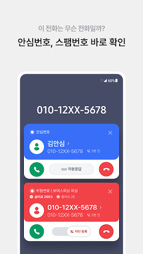 스팸전화/문자,보이스피싱,스미싱과 같은 악성 전화번호를 즉시 확인하고 차단할 수 있습니다.
