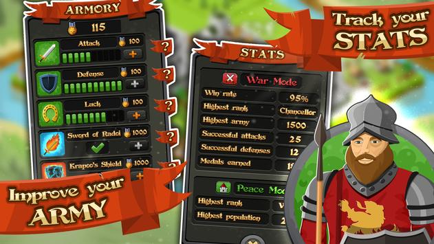 After each skirmish, you will be rewarded with medals, depending on the course of the battle you just came through. The more glorious you are after the fight, the more medals you earn. You can use the medals in the Armory section to upgrade your battle attributes (Attack, Defense and Luck). It's much easier to achieve a triumph with upgraded battle atributes, even with a smaller army.