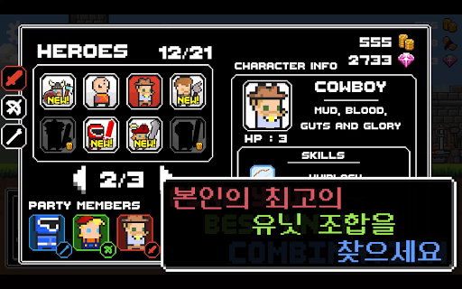 65캐릭터 X 3스킬! 캐릭터들의 고유한 스킬을 사용해 적을 무찌르세요.