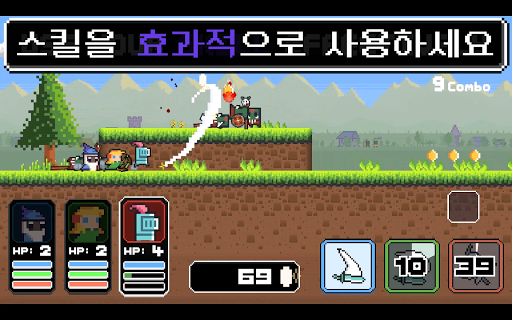 영웅들은 쉬지 않고 앞을 향해 달려나갑니다. 적들도 쉬지 않고 몰려오죠.