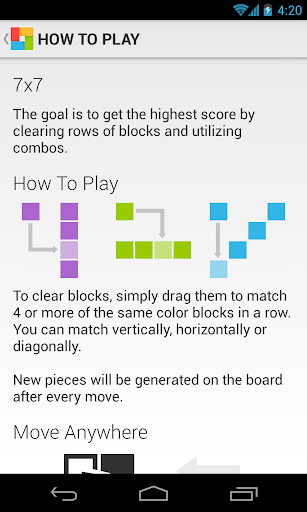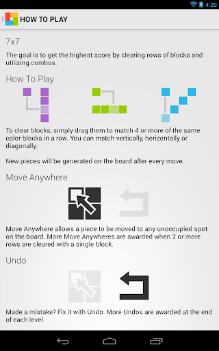 It’s easy to grasp and very addictive. Make horizontal, vertical or diagonal rows of the same color by dragging pieces across the board and get points and power ups! Try it out and you won’t be able to stop playing it!