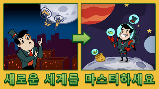 달과 화성으로 가는 모험을 열어 새로운 투자, 업그레이드, 매니저, 아이템을 우주에서 찾아보세요.