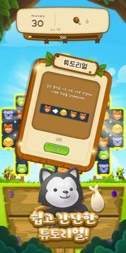 같은 종류의 동물 3마리를 매치하여 블럭을 팡! 팡! 터뜨려 보세요!