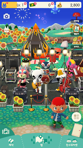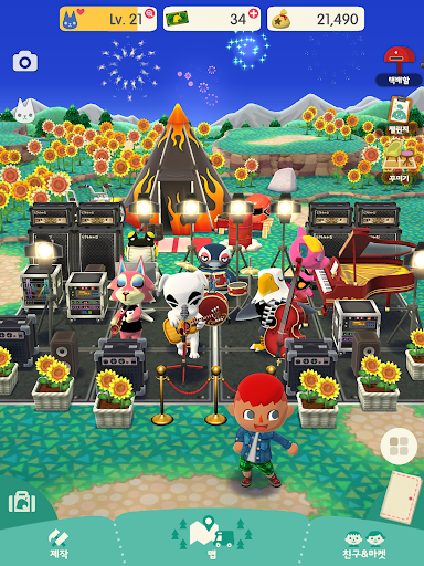 다양한 텐트, 해먹, 난로, 인형과 소파 등 취향에 맞춰 자유롭게 꾸밀 수 있습니다. 세련된 테이블과 의자를 두면 오픈 카페로, 기타와 마이크를 배치하면 야외 라이브 회장으로, 회전목마를 만들면 놀이공원으로 변신. 수영장을 만들거나 불꽃놀이를 할 수도 있어요.