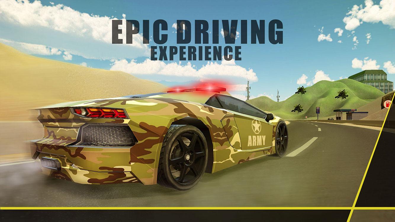 Ever wanted to try a sports car simulator? Now you can drive, drift and feel a racing sports car for free!. Be the fastest and experienced highway driver and earn respect between all the other drivers. Super cars are all about thrill for speed and need for extra speed, that is where army extreme car driving comes in with crazy car chase, street car racing, assault pursuit , real drift racing and car destruction league.