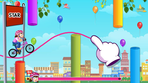 - Put your finger on the screen to draw the way for baby biking, avoid the obstacles.