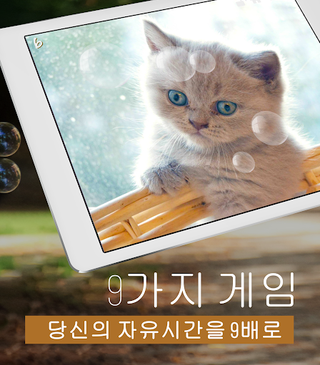 · 비누방울 터트리기 (비누방울을 터트려서 귀여운 고양이와 강아지가 나오는 새로운 배경 이미지를 얻으세요)