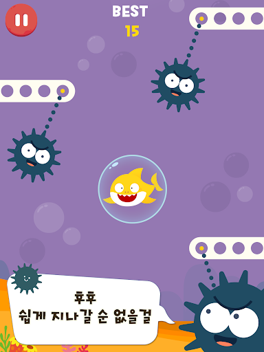 - 아기 상어를 터치해서 잘 헤엄칠 수 있도록 도와주세요. 조심! 장애물을 피하고 최고기록을 세워 보세요.