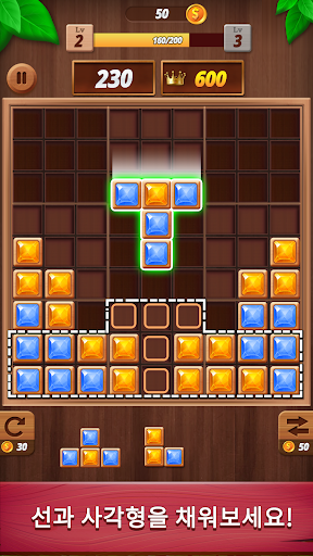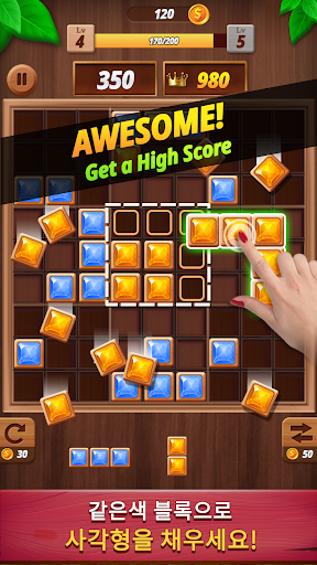 ● 높은 점수를 얻으려면 같은색 의 블록으로 선과 사각형을 만드세요.