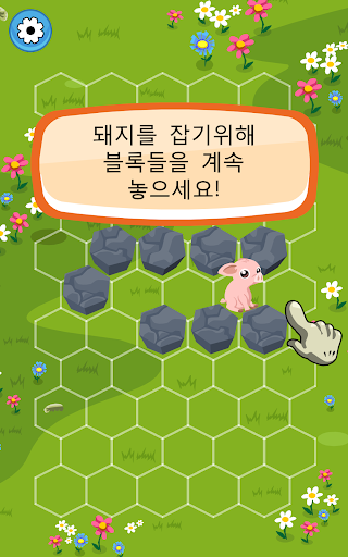 순서기반의 퍼즐 게임인, “돼지 잡기”에서 도망가는 돼지가 가는 길 위에 육각 블록들을 놓으세요! 돼지를 잡기 위해 육각형 보드의 빈 셀 위를 탭하세요. 라운드를 시작하기 전에, 3개의 보너스 블록들로 보드의 가장 짧은 탈출 루트를 차단하세요. 그 후에 돼지는 육각형 미로에서 달아나기 시작합니다. 돼지의 순서이후 도망갈 길이 없을 때까지