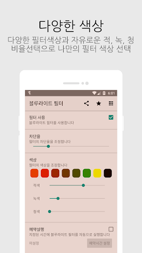 - 다양한 필터 색상과 자유로운 차단율 조절 기능을 제공합니다