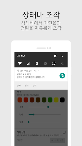 - 상태바에서 차단율을 조절하고 필터를 종료할 수 있습니다