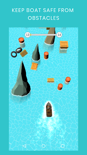 Its fun game with one finger control. Control the running boat and smash the boxes, wheels, drums placed on the way. Avoid striking the rocks else you end your life.