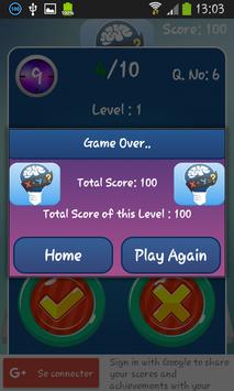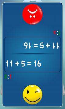 if you chose single play option you have to answer with true or false for the equation before up time, but if you chose multiplayer option you have to give answers faster than your opponent and your score will go up!