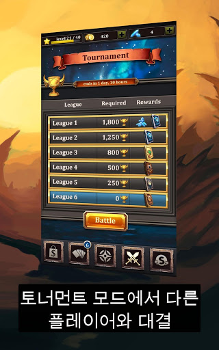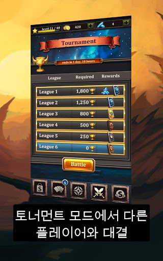 - 시즌별, 리그별 토너먼트에 참여하여 영웅 기술을 뽐내세요.