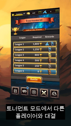 - 자신의 카드 컬렉션을 만들고 다수의 멋진 카드로 업그레이드 할 수 있어요. 자신의 괴물을 키워 사나운 보스와 겨루세요.