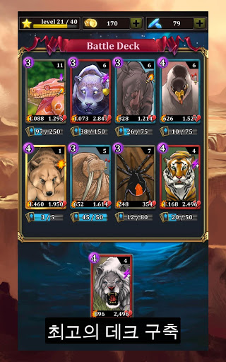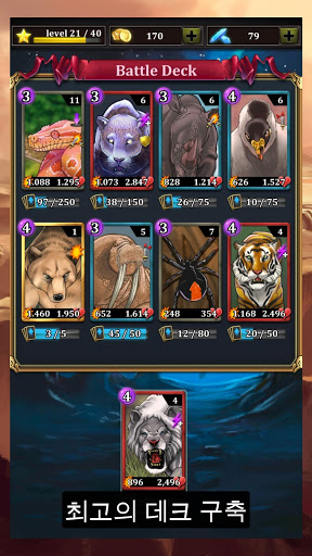 - 일반/드문/서사시적인/전설적인 동물 카드를 여러 가지 레벨로 업그레이드 할 수 있어요.