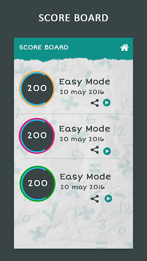 간단한 규칙, 세 가지 다른 모드를 포함한 세 가지 모드를 포함한 훌륭한 캐주얼 게임 플레이, 수학 능력에 적합한 모드를 재생할 수 있고 모든 연령대에 적합합니다.쉬운 모드 -